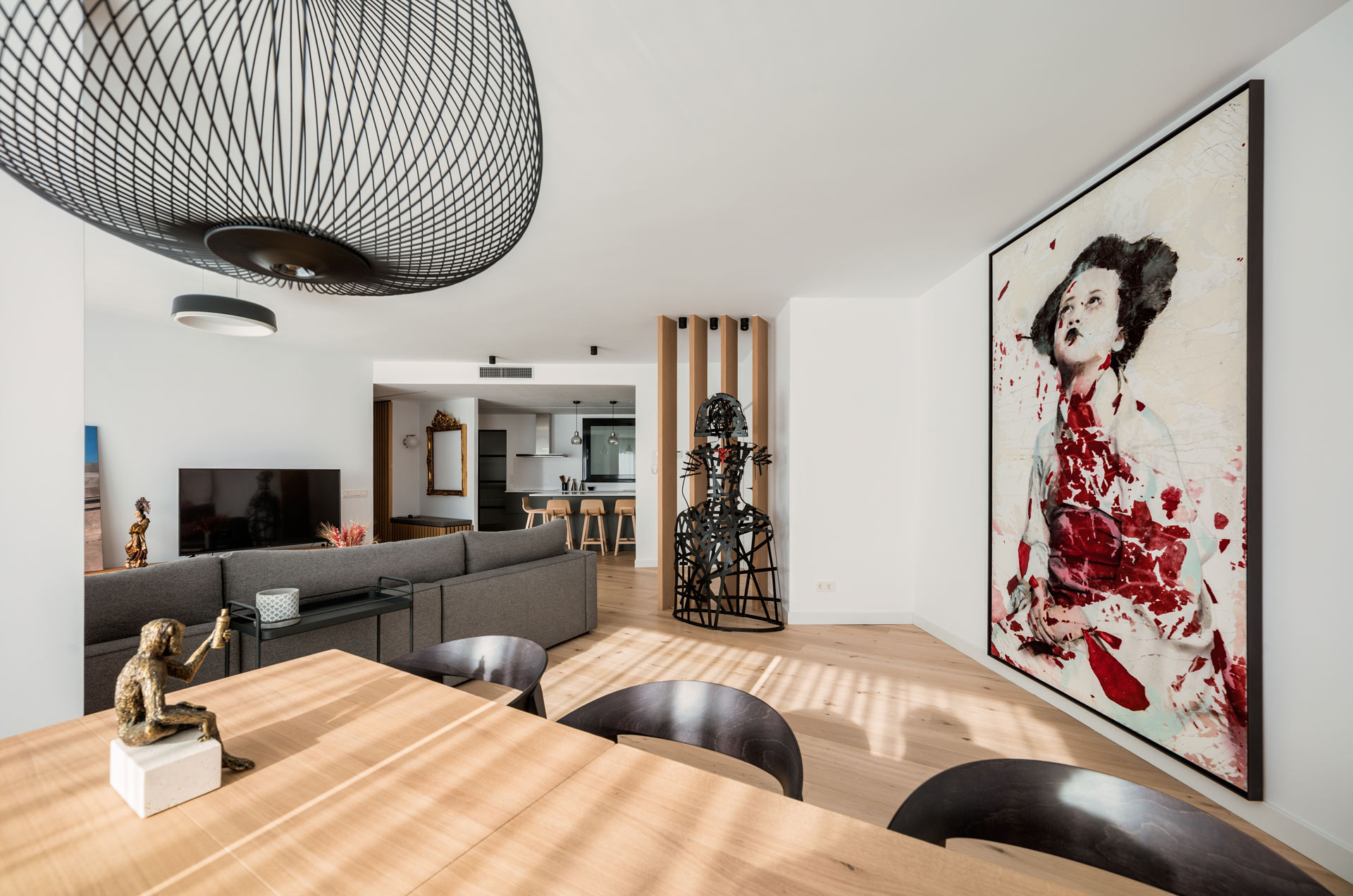 Un dels punts clau d’aquest projecte és la sensibilitat especial del propietari per l’art. Des del principi, tenia clar que l’habitatge estaria vestit amb obres d’art, tant de pintura com d’escultura.